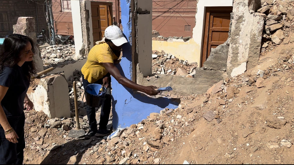 “The girl who was obsessed with walls” is a performance created in the city of Jodhpur, India. It is part of my residency at Villa Swagatam and my project “The Whisperers”, based on the city's walls. For this performance, I chose to paint a house being demolished in Jodhpur's emblematic blue. By painting walls doomed to disappear, I wanted to inscribe a last trace of life, while sealing memory to oblivion, preservation to modernity. This gesture gave rise to a dialogue between destruction and reconstruction, placing notions of continuity, transmission and disappearance at the heart of the project.